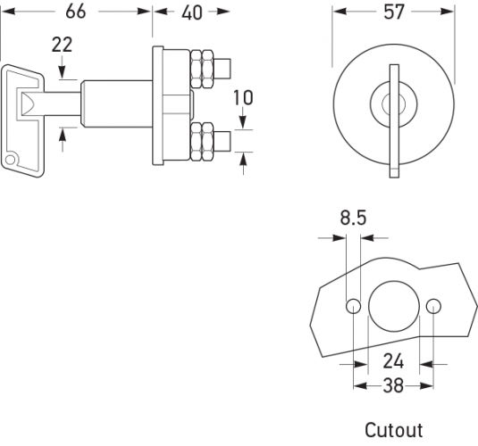 Suitable for cars and medium sized trucks. Complete with removable key. For interrupting circuits (prevents theft and short circuit).