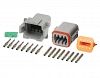Environmentally sealed connectors rated at -55° to 125°C. Supplied with nickel plated copper alloy crimp contacts, locking wedges and large I.D. removable contacts, 1.9mm in diameter. Plug and socket kits come complete with terminals and seals. Supplied with 16 nickel plated copper alloy crimp contacts and 2 locking wedges.