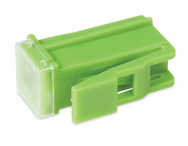 Mini female plug-in fuse link with lock.