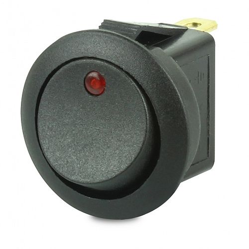 Rocker Switch Off-On Round, Red LED - 12 Volt Pilot