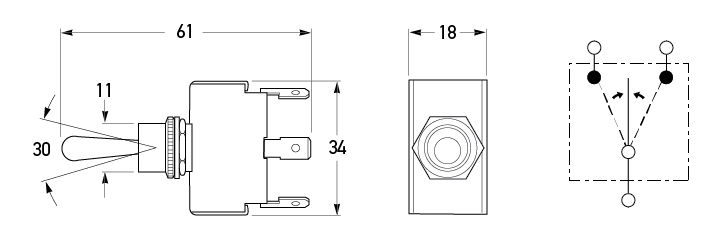 Toggle Switch (On)-Off-(On) Momentary Spring Return - Metal Shaft