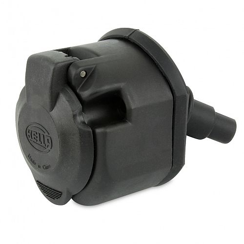 Socket with lid made from black plastic (ISO 11 446). Screw contacts.
