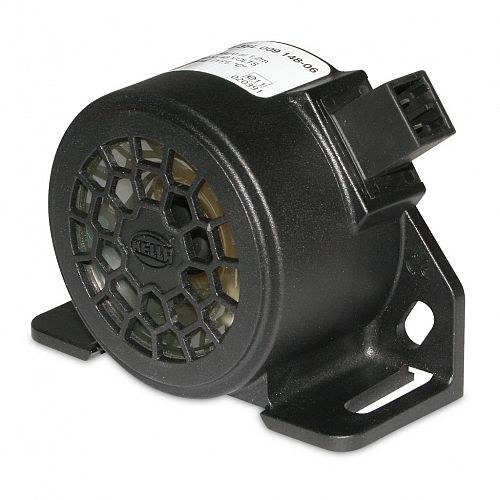 Heavy duty reversing alarm with integral AMP connection and fixed sound pressure levels between 90 and 107dB @ 1.2 metres. Epoxy encapsulated circuit boards offer protection against humidity, dirt and vibration.