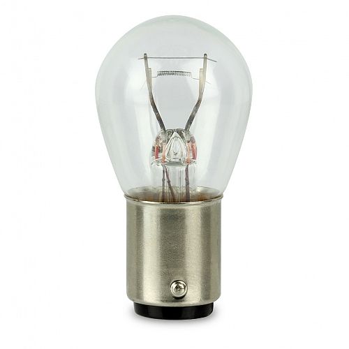 Bayonet stop & tail lamp bulbs. Double contact, double filament, offset pins.