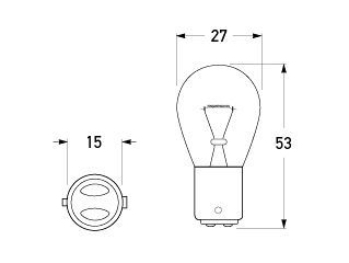 Bayonet indicator & stop lamp bulbs. Double contact, single filament.