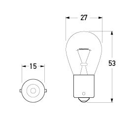 Indicator and stop lamp bulbs. Single filament, single contact.