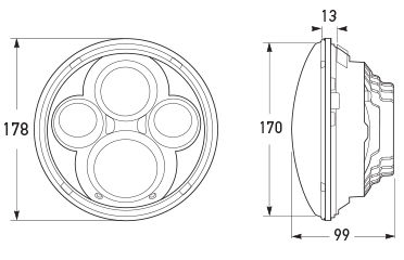 Combining the latest state of the art LED technology, multivoltage 12/24V DC circuit design and precision optics, the retrofit lamps provide outstanding visibility, safety, and durability – making them one of the most advanced 7” LED headlamps available. The tough die-cast aluminium housing is IP67 sealed against water and dust ingress with a UV resistant, hard coated polycarbonate lens making the HELLA’s 7" Round LED Headlamp range perfect for use on and off-road.