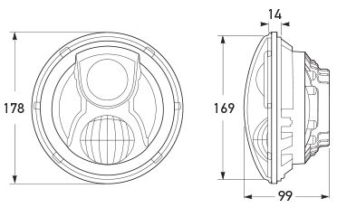 Combining the latest state of the art LED technology, multivoltage 12/24V DC circuit design and precision optics, the retrofit lamps provide outstanding visibility, safety, and durability – making them one of the most advanced 7” LED headlamps available. The tough die-cast aluminium housing is IP67 sealed against water and dust ingress with a UV resistant, hard coated polycarbonate lens making the HELLA’s 7" Round LED Headlamp range perfect for use on and off-road.