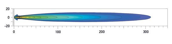 FF 50 Spread Beam distance. Recorded with single lamp. Distance in metres
