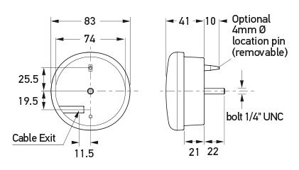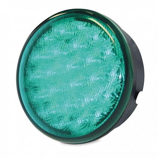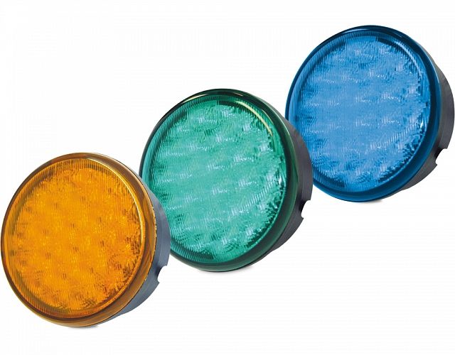 83mm diameter round LED signal lamp with single bolt mount for emergency vehicles.