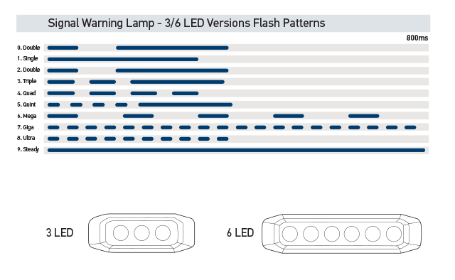 The Multi-flash Slim Signal Warning Lamp offers up to 18 different flash patterns (10 base patterns available on all 3 and 6 LED models, with 8 additional patterns available on 6 LED models), compliant to SAE J595 Class 1 – being the brightest class, and is suitable for on road use. The lamps are Multivolt™ so may be used on 12V or 24V vehicles.