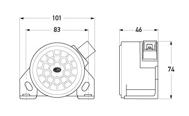 Heavy duty reversing alarm with integral AMP connection and fixed sound pressure levels between 90 and 107dB @ 1.2 metres. Epoxy encapsulated circuit boards offer protection against humidity, dirt and vibration.