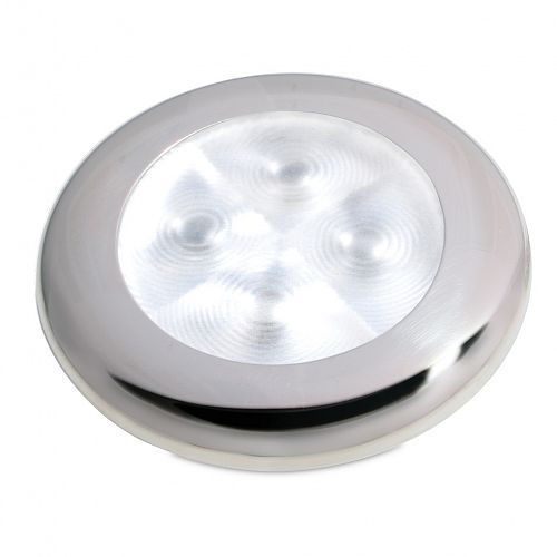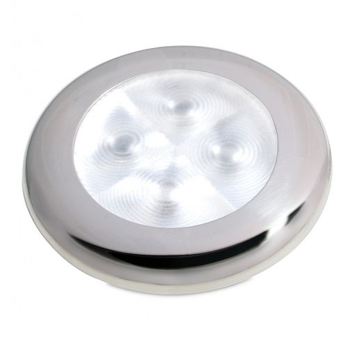 Attractive, energy efficient round LED courtesy lamps for interior and exterior use. Available in a ramnge of colours and different rim finishes.
