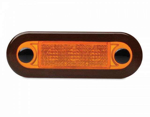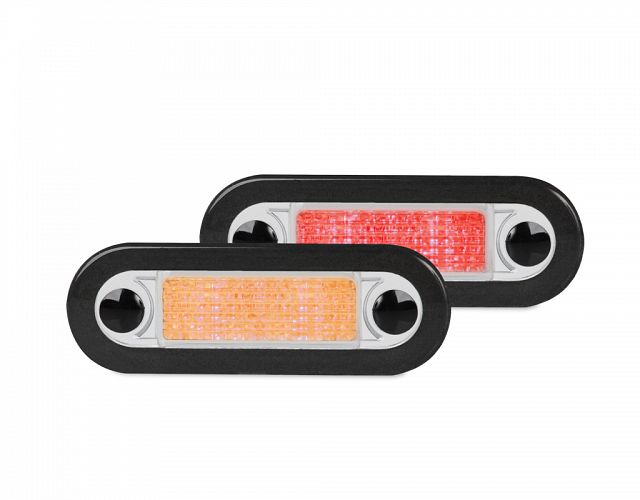 Wide rim flush mount courtesy lamp with either amber or red LEDs.