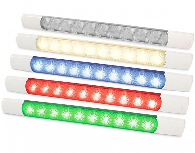 These LED courtesy surface mount strip lamps feature a shallow 11mm profile and completely sealed housings. Available in White, Warm white, Blue, Red and Green colour variants.