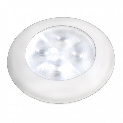 Attractive, energy efficient round LED courtesy lamps for interior and exterior use. Available in nine exciting colours with a range of different rim finishes. Optic appears clear until illuminated.