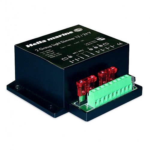 The Hella marine 2 group light dimmer provides precise dimming control for one or two separate light groups, and sophisticated voltage regulation with a ‘soft-start’ feature to lengthen the life of a filament bulb. Suitable for selected HELLA PWM based LED lamps and bulb lamps. The dimmer also provides low voltage protection against deep battery discharge.