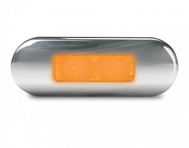 Amber flush mount front end outline LED lamp (FEOL) with optional stainless steel rim.