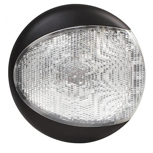 Low profile round LED rear fog lamp with single LED and clear lens. Optic appears clear until illuminated.