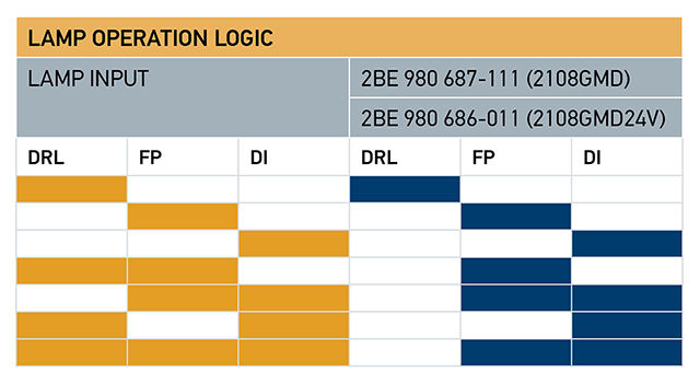 The lamp has internal operation logic that will suppress the Safety DayLight™ function during the indicator flasher cycle and whenever the front position function is operating.