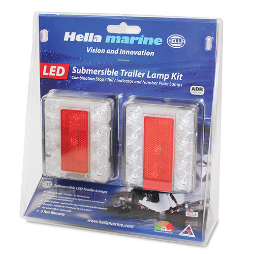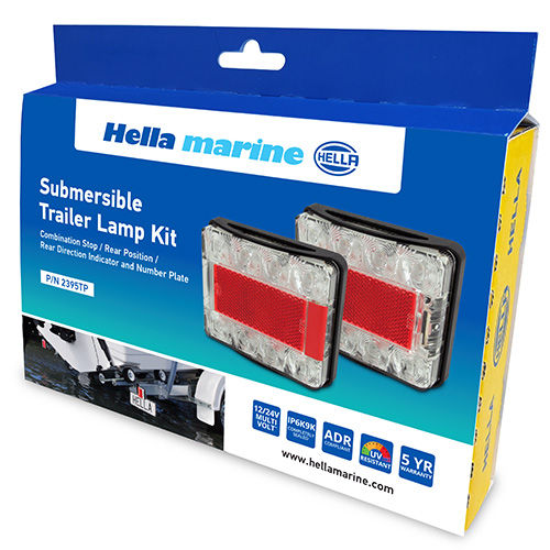 Note: There is new environmentally friendly packaging for Trailer Kit 2VB 980 720-811. The new part is identical except for the packaging (made from 100% recycled cardboard, with a sleeve), with HELLA branding changing to Hella marine. The lamps and kit contents are identical, and can still be displayed on the counter or hung on a standard merchandising hook.