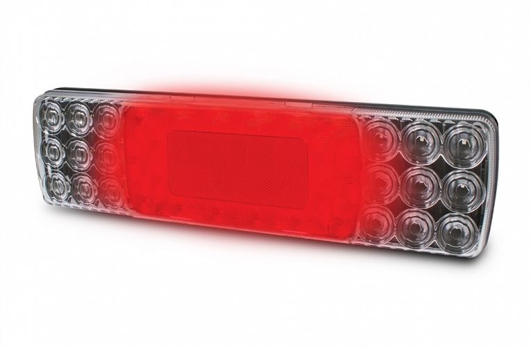 Form meets function with this LED combination lamp featuring stop, rear position, and rear direction indicator lamps with a central 64cm² red retro reflector.
