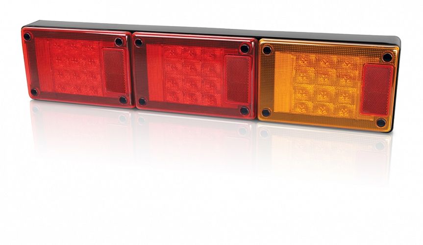 Jumbo-S LED stop, rear position, rear direction indicator lamp with 23cm² red retro reflectors. Lamps are pre-assembled and wired into housing for easy installation. Shockproof and fully sealed to withstand temporary water submersion and high-pressure washing.