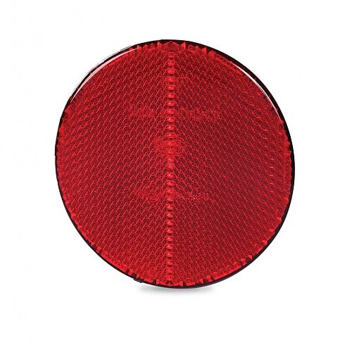 Red acrylic retro reflector 83mm in diameter with black rim, 48cm2. Single bolt mount.