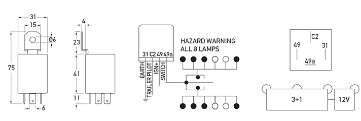 HCS Electronic Flasher Unit - 12V - 3+1