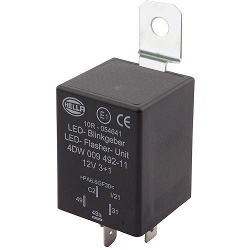 LED compatible flasher unit specifically designed for use with HCS (HELLA Compatibility Solution) ISO 13207‑1 LED indicator lamps.