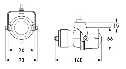 Compact Micro DE (Diaxial Ellipsoid) Halogen work lamp for use in applications with limited mounting space. Concentrated close range illumination. Magnesium housing with U-shaped one point mounting bracket.