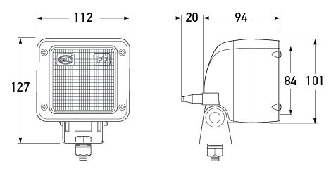 Halogen work lamp with Free-Form (FF) reflector for uniform close range illumination. Made of die-cast aluminium. Glass lens bonded with reflector to be dust and moisture-proof. Shock-proof plastic housing. External wiring connection. DT version with 2 pin Deutsch rear plug.