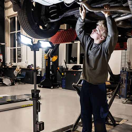 The TOWER 5 CONNECT is a highly flexible, compact pair of floodlights. Independent 360° adjustment and 2 level light output to deliver perfect lighting conditions for painting and installation work. The integrated tripod and carry handle make the lightweight (5.2kg), quick-fold system extremely compact and portable. Extendible up to 2 metres, the TOWER 5 CONNECT collapses to under 900mm.