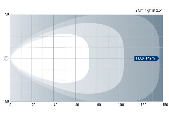 The RokLUME 380 Close Range features a powerful light output of 7500 measured lumens and an extremely robust design, ideal for the most demanding environments and applications. The latest LEDs and engineered optics combine to produce a broad and even light reaching up to 142m long by 100m wide. The colour temperature of 5000K is similar to daylight meaning improved comfort and reduced eye strain over long periods of use.
